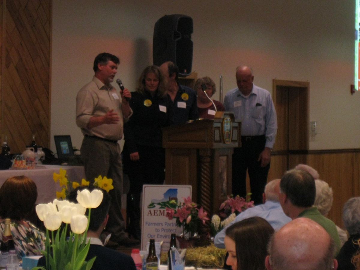 The farm was chosen by the Cattaraugus County Soil & Water Conservation District for their outstanding efforts to implement a wide variety of best management practices to improve water quality and enhance soil productivity.  Practices include a bulk silo runoff management project, milk house waste storage tank and pump system, fencing livestock away from streams, and planting cover crops to reduce erosion and improve soil conditions.  They are actively applying a comprehensive nutrient management plan to properly manage and utilize animal wastes and nutrients.  They are also active in the Cattaraugus County Farm Bureau.