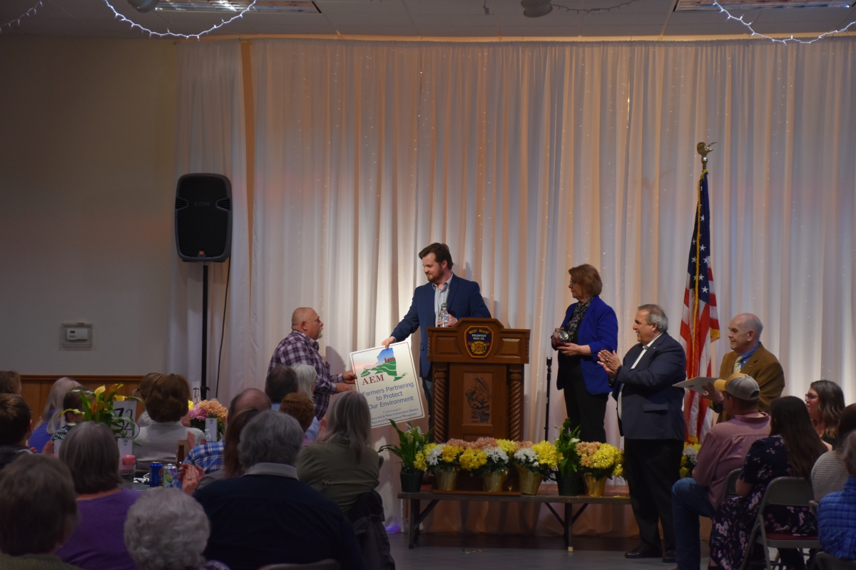 Mike Jones was born and raised on his family's dairy farm in Randolph, NY. He was an active FFA member throughout his years at Randolph Central School. Mike began his own farm in 1978 where he raised Holstein heifers, draft horses and other various animals. Mike is married to Pamela and has three children, Kurt Jones, Karah Mattern and Megan Crosson, and seven grandchildren. Mike is presently raising Registered Black Angus and owns a team of Clydesdale horese and one riding horse. Mike enjoys his family, golfing, attending horse shows and working the farm, as well as caring for his animals and property. He works closely with WNY Crop Management Association for crop rotation advice and soil erosion management. Mekka Jo farms installed a covered waste storage system with the assistance of Cattaraugus County Soil and Water Conservation District through the Agriculutral Environmental Management Program (AEM) and the Natural Resourse Conservation Services (NRCS) Envrionmental Quality Incentive Program (EQIP). Many other local engineers, contractors, suppliers, and ag support providers came together to make this project possible. The Farm also installed a heavy use area, to protect high traffic cattle crossings, roof runoff structures and drainage systems to help direct clean rainwater away from manure processing areas. These practices together will allow the farm to store manure during times when the ground is frozen or saturated. By storing the manure and applying it with the right site conditions the farm will utilize the nutrients more efficiently and protect water quality of Cattaraugus County. Mike appreciates this honor and will continue to strive to manage his property with conservation of the environment as an important part of his strategy.